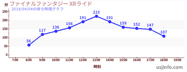 • ファイナルファンタジー XRライド$B$N(B2018年04月04日の待ち時間