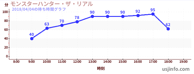 • モンスターハンター・ザ・リアル$B$N(B2018年04月04日の待ち時間