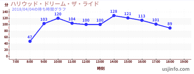 • ハリウッド・ドリーム・ザ・ライド$B$N(B2018年04月04日の待ち時間