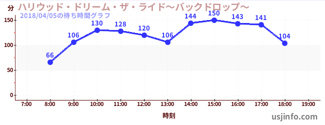 • ハリウッド・ドリーム・ザ・ライド〜バックドロップ〜$B$N(B2018年04月05日の待ち時間