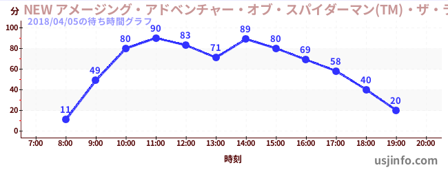 • NEW アメージング・アドベンチャー・オブ・スパイダーマン(TM)・ザ・ライド 4K3D$B$N(B2018年04月05日の待ち時間