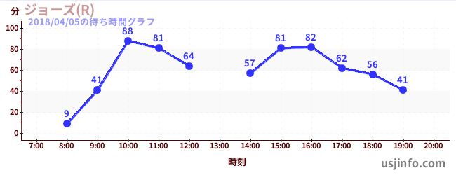 • ジョーズ(R)$B$N(B2018年04月05日の待ち時間