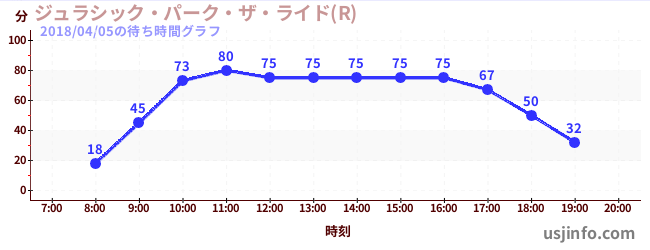 • ジュラシック・パーク・ザ・ライド(R)$B$N(B2018年04月05日の待ち時間
