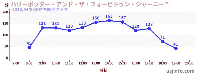 • ハリーポッター・アンド・ザ・フォービドゥン・ジャーニー™$B$N(B2018年04月05日の待ち時間