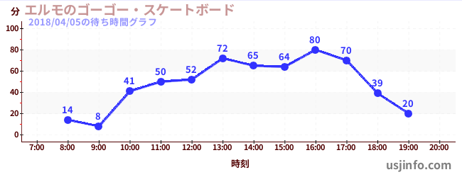 • エルモのゴーゴー・スケートボード$B$N(B2018年04月05日の待ち時間