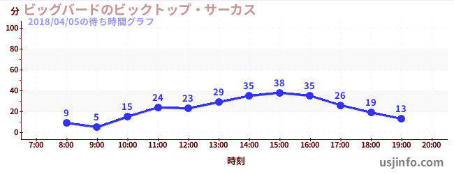• ビッグバードのビックトップ・サーカス$B$N(B2018年04月05日の待ち時間