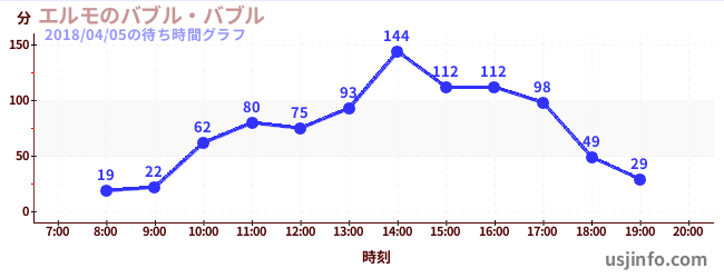 • エルモのバブル・バブル$B$N(B2018年04月05日の待ち時間