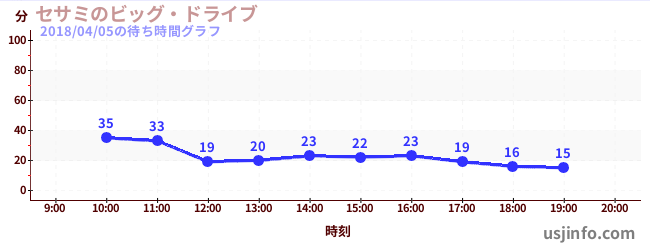 • セサミのビッグ・ドライブ$B$N(B2018年04月05日の待ち時間