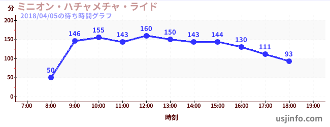• ミニオン・ハチャメチャ・ライド$B$N(B2018年04月05日の待ち時間
