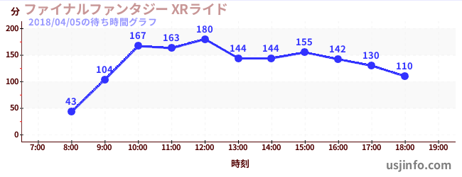 • ファイナルファンタジー XRライド$B$N(B2018年04月05日の待ち時間
