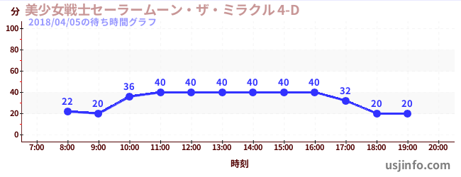 • 美少女戦士セーラームーン・ザ・ミラクル 4-D$B$N(B2018年04月05日の待ち時間