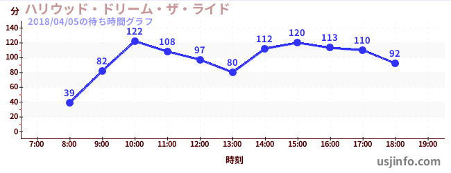 • ハリウッド・ドリーム・ザ・ライド$B$N(B2018年04月05日の待ち時間