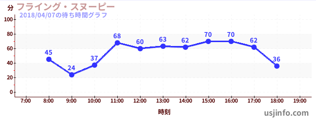 • フライング・スヌーピー$B$N(B2018年04月07日の待ち時間