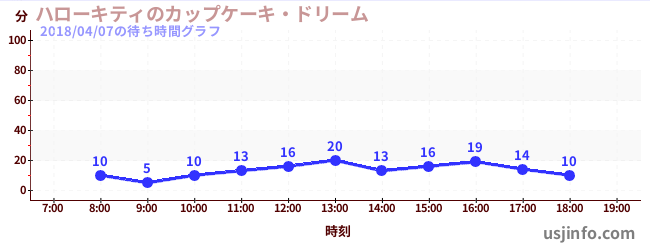 • ハローキティのカップケーキ・ドリーム$B$N(B2018年04月07日の待ち時間