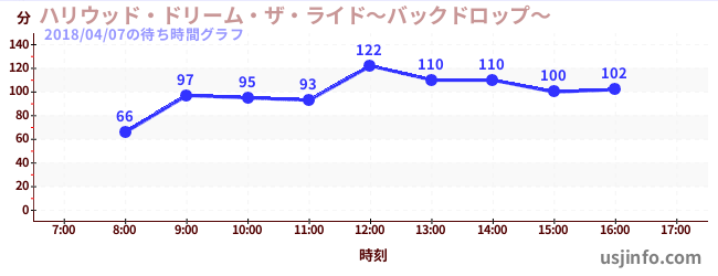 • ハリウッド・ドリーム・ザ・ライド〜バックドロップ〜$B$N(B2018年04月07日の待ち時間