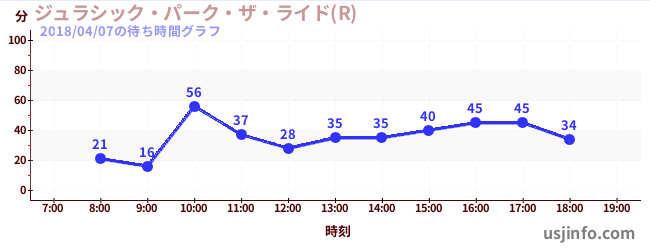• ジュラシック・パーク・ザ・ライド(R)$B$N(B2018年04月07日の待ち時間