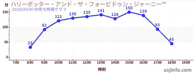 • ハリーポッター・アンド・ザ・フォービドゥン・ジャーニー™$B$N(B2018年04月07日の待ち時間