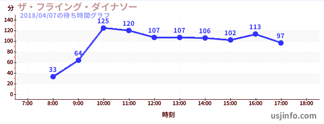 • ザ・フライング・ダイナソー$B$N(B2018年04月07日の待ち時間