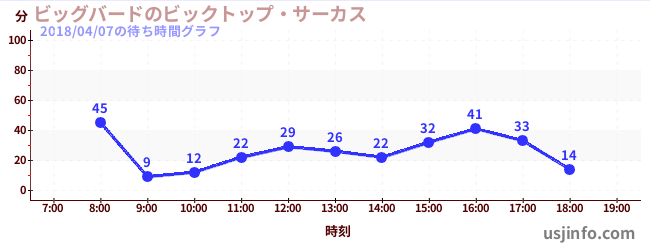 • ビッグバードのビックトップ・サーカス$B$N(B2018年04月07日の待ち時間