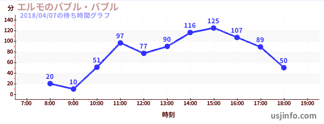• エルモのバブル・バブル$B$N(B2018年04月07日の待ち時間