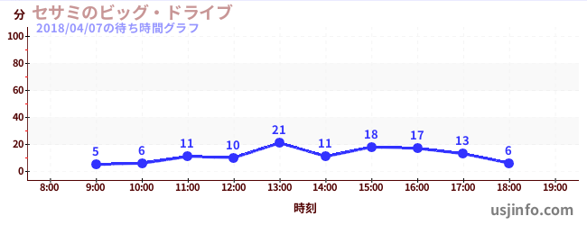 • セサミのビッグ・ドライブ$B$N(B2018年04月07日の待ち時間
