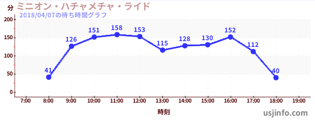 • ミニオン・ハチャメチャ・ライド$B$N(B2018年04月07日の待ち時間