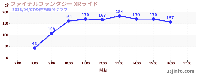 • ファイナルファンタジー XRライド$B$N(B2018年04月07日の待ち時間