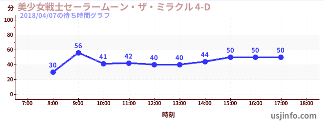 • 美少女戦士セーラームーン・ザ・ミラクル 4-D$B$N(B2018年04月07日の待ち時間
