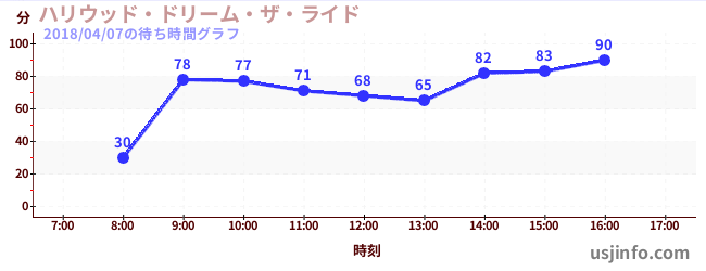 • ハリウッド・ドリーム・ザ・ライド$B$N(B2018年04月07日の待ち時間
