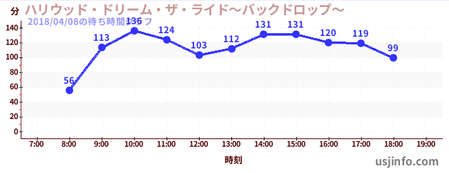 • ハリウッド・ドリーム・ザ・ライド〜バックドロップ〜$B$N(B2018年04月08日の待ち時間