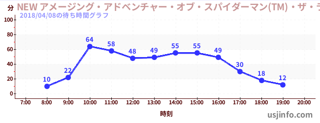 • NEW アメージング・アドベンチャー・オブ・スパイダーマン(TM)・ザ・ライド 4K3D$B$N(B2018年04月08日の待ち時間