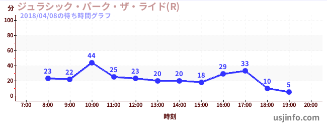 • ジュラシック・パーク・ザ・ライド(R)$B$N(B2018年04月08日の待ち時間