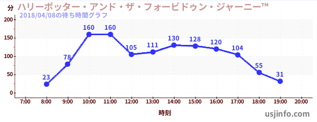 • ハリーポッター・アンド・ザ・フォービドゥン・ジャーニー™$B$N(B2018年04月08日の待ち時間