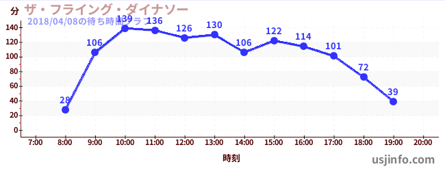 • ザ・フライング・ダイナソー$B$N(B2018年04月08日の待ち時間