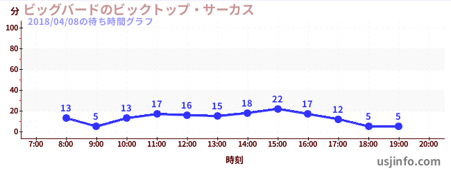 • ビッグバードのビックトップ・サーカス$B$N(B2018年04月08日の待ち時間