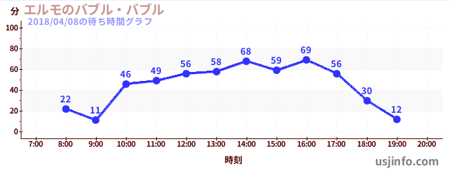 • エルモのバブル・バブル$B$N(B2018年04月08日の待ち時間