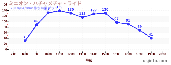 • ミニオン・ハチャメチャ・ライド$B$N(B2018年04月08日の待ち時間