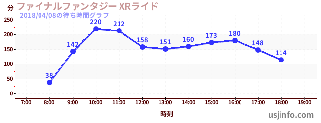 • ファイナルファンタジー XRライド$B$N(B2018年04月08日の待ち時間