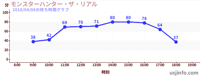 • モンスターハンター・ザ・リアル$B$N(B2018年04月08日の待ち時間