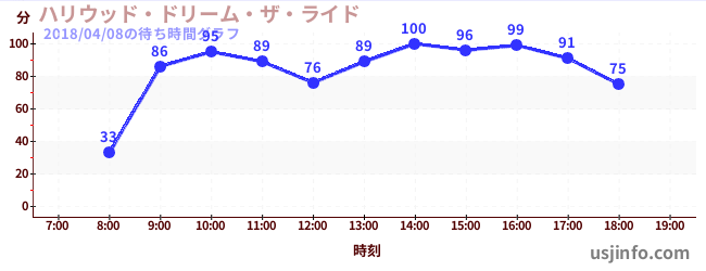 • ハリウッド・ドリーム・ザ・ライド$B$N(B2018年04月08日の待ち時間