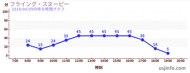 • フライング・スヌーピー$B$N(B2018年04月09日の待ち時間