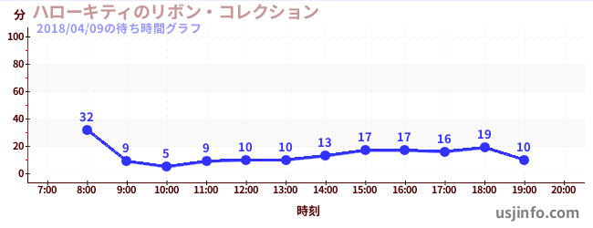 • ハローキティのリボン・コレクション$B$N(B2018年04月09日の待ち時間