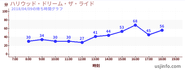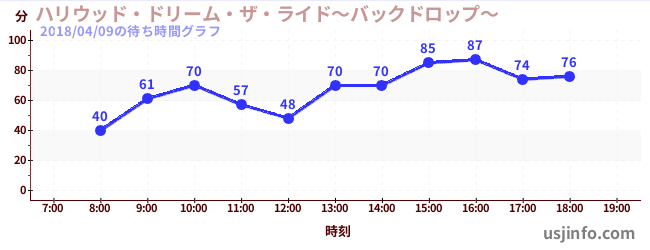 • ハリウッド・ドリーム・ザ・ライド$B$N(B2018年04月09日の待ち時間
