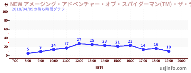 • NEW アメージング・アドベンチャー・オブ・スパイダーマン(TM)・ザ・ライド 4K3D$B$N(B2018年04月09日の待ち時間