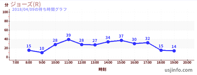 • ジョーズ(R)$B$N(B2018年04月09日の待ち時間