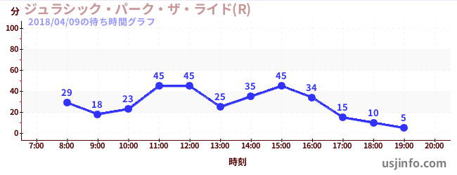 • ジュラシック・パーク・ザ・ライド(R)$B$N(B2018年04月09日の待ち時間