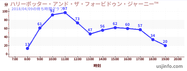 • ハリーポッター・アンド・ザ・フォービドゥン・ジャーニー™$B$N(B2018年04月09日の待ち時間