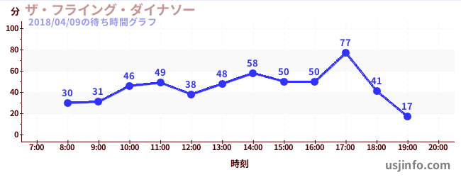 • ザ・フライング・ダイナソー$B$N(B2018年04月09日の待ち時間