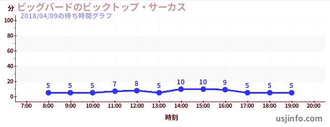 • ビッグバードのビックトップ・サーカス$B$N(B2018年04月09日の待ち時間