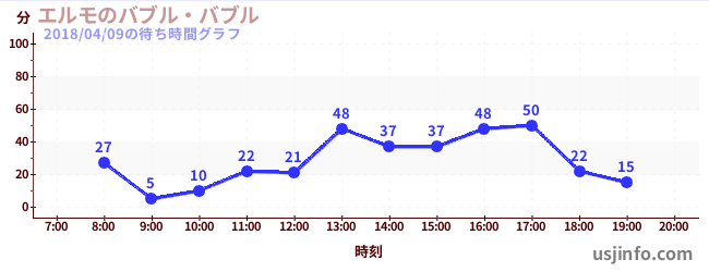 • エルモのバブル・バブル$B$N(B2018年04月09日の待ち時間